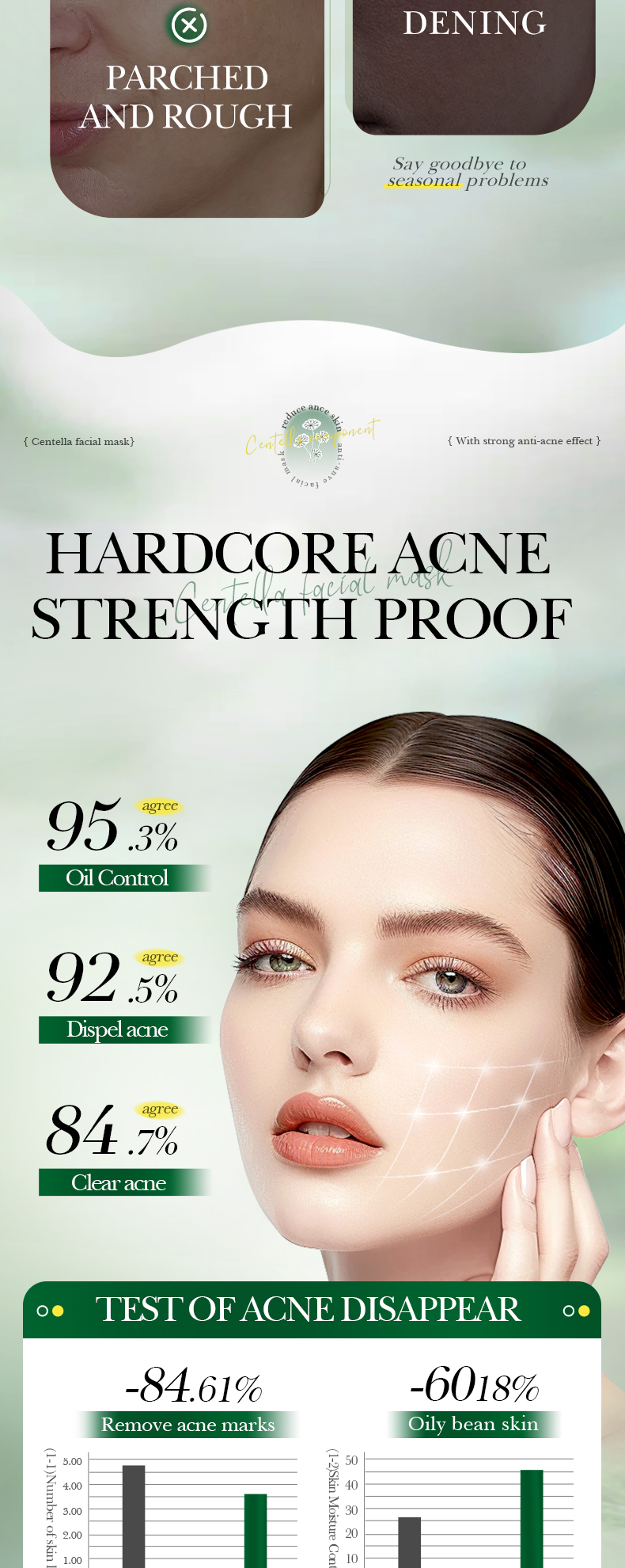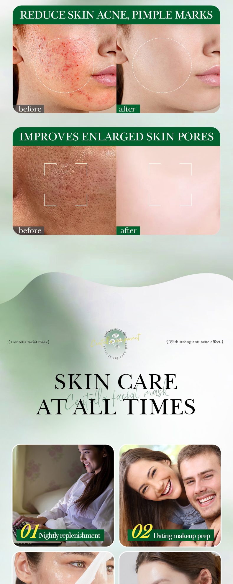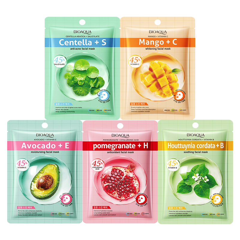 | Color | Centella asiatica mask, Mango Mask, Avocado Face Mask, Pomegranate mask, Houttuynia cordata mask |