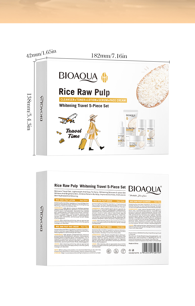 BIOAOUA Rice Puree Whitening Travel Five-Piece Set