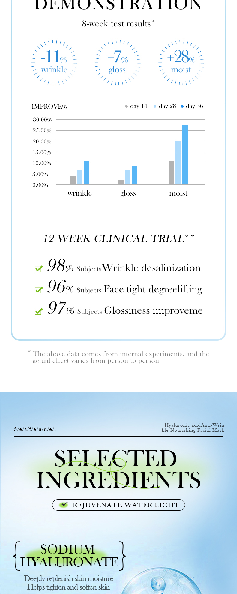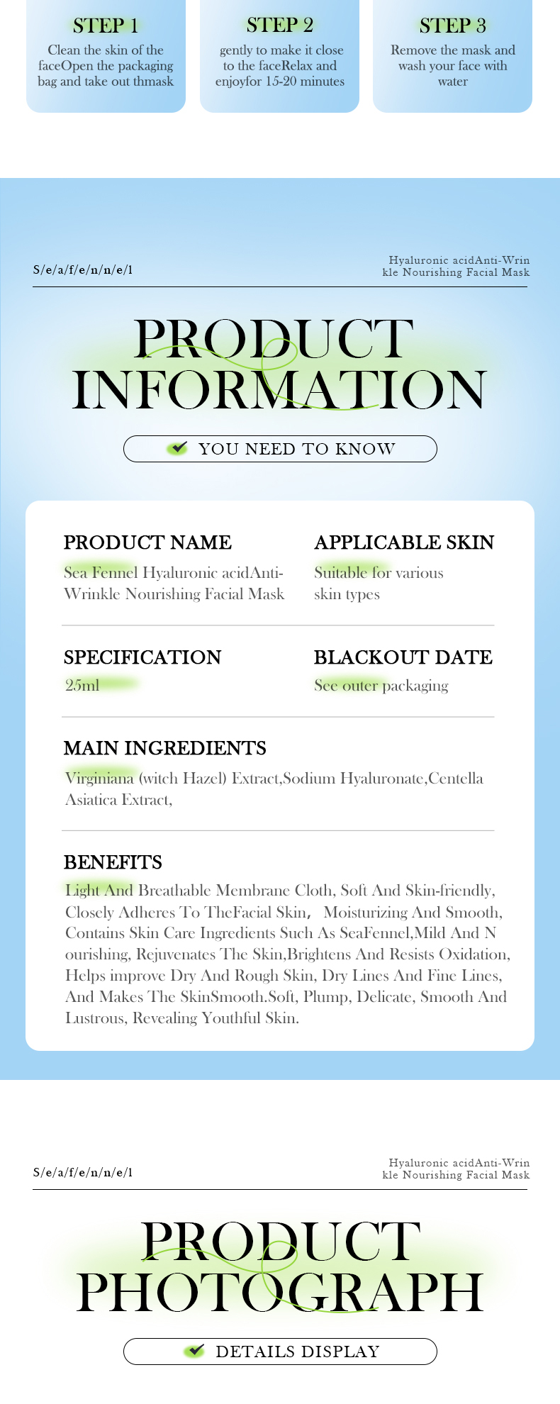 | Color | Hyaluronic acid mask |