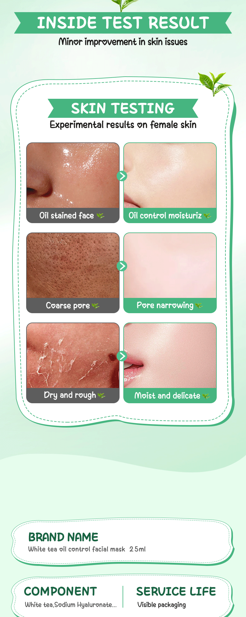 | Color | White Tea Facial Mask, Bird's Nest Facial Mask |