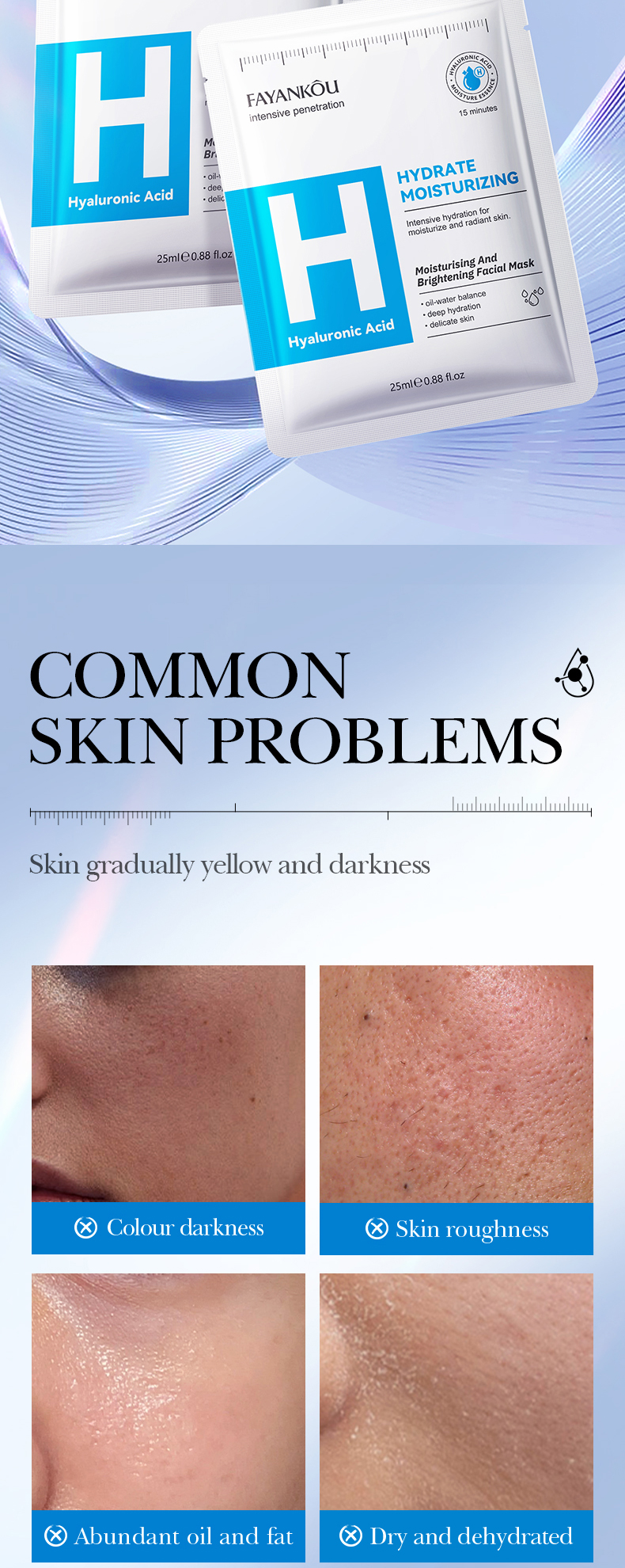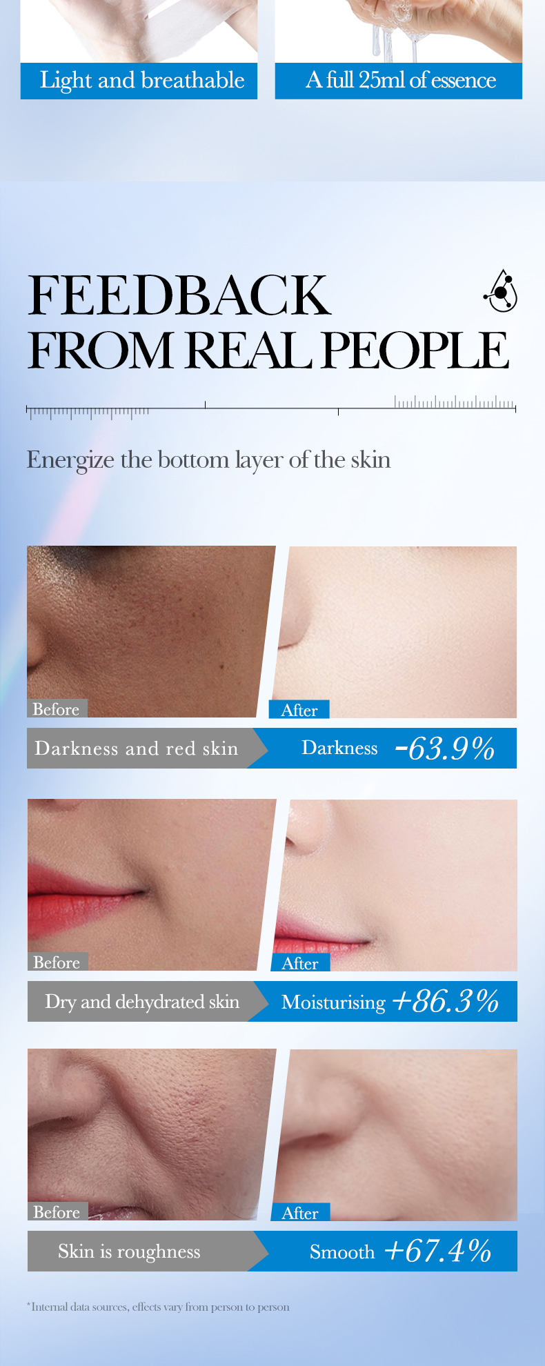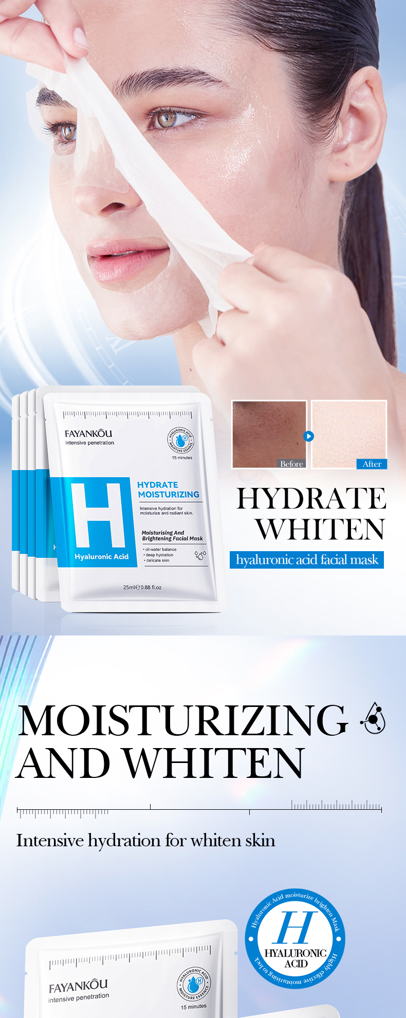 | Color | Hyaluronic acid mask, Peptide Anti-aging Mask, Salicylic acid mask, Vitamin B5 Mask, Vitamin C Mask, Chamomile Mask |