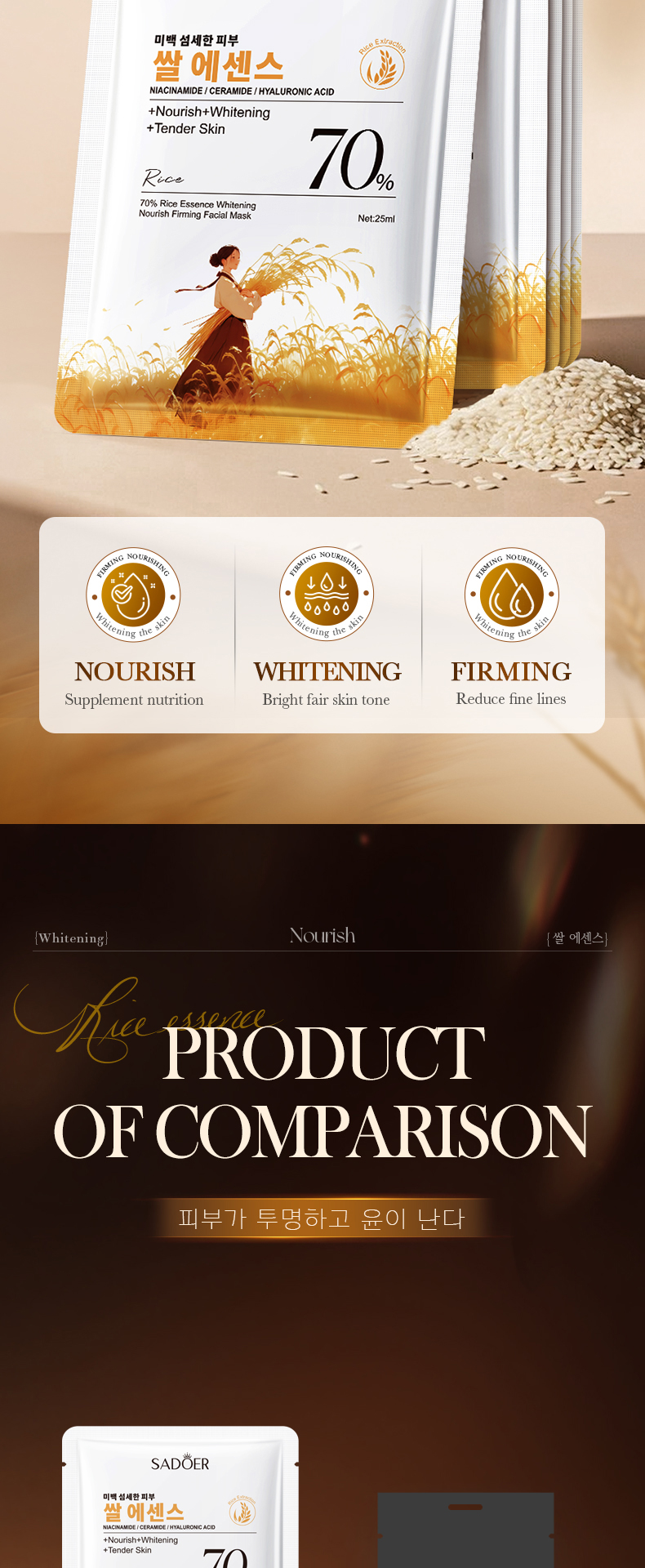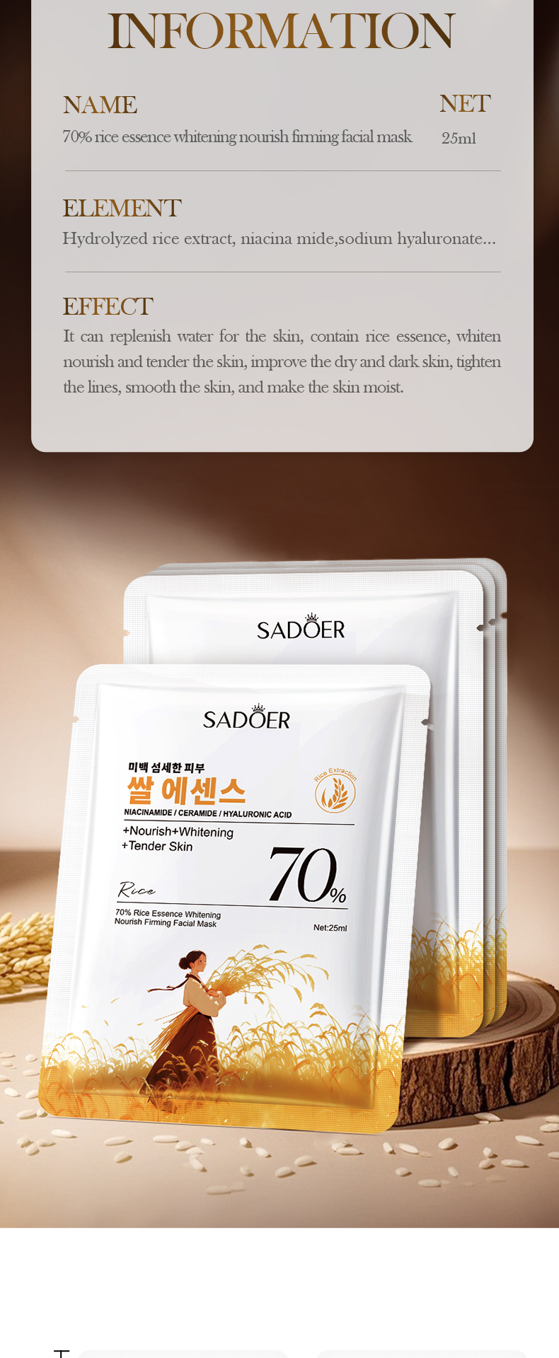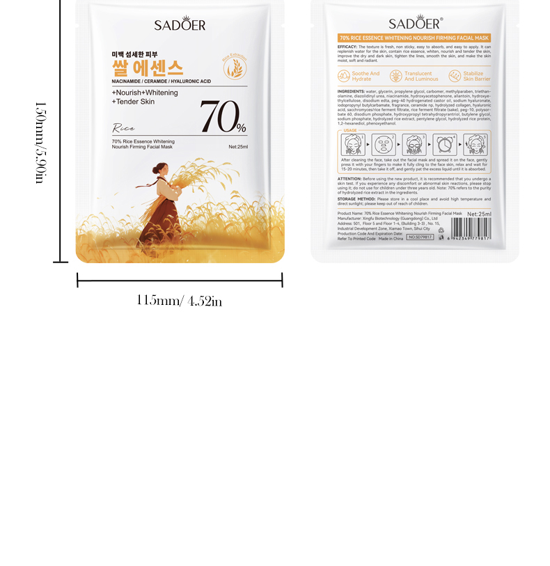 SADOER 70% Rice Essence Brightening Nourishing Firming Facial Mask