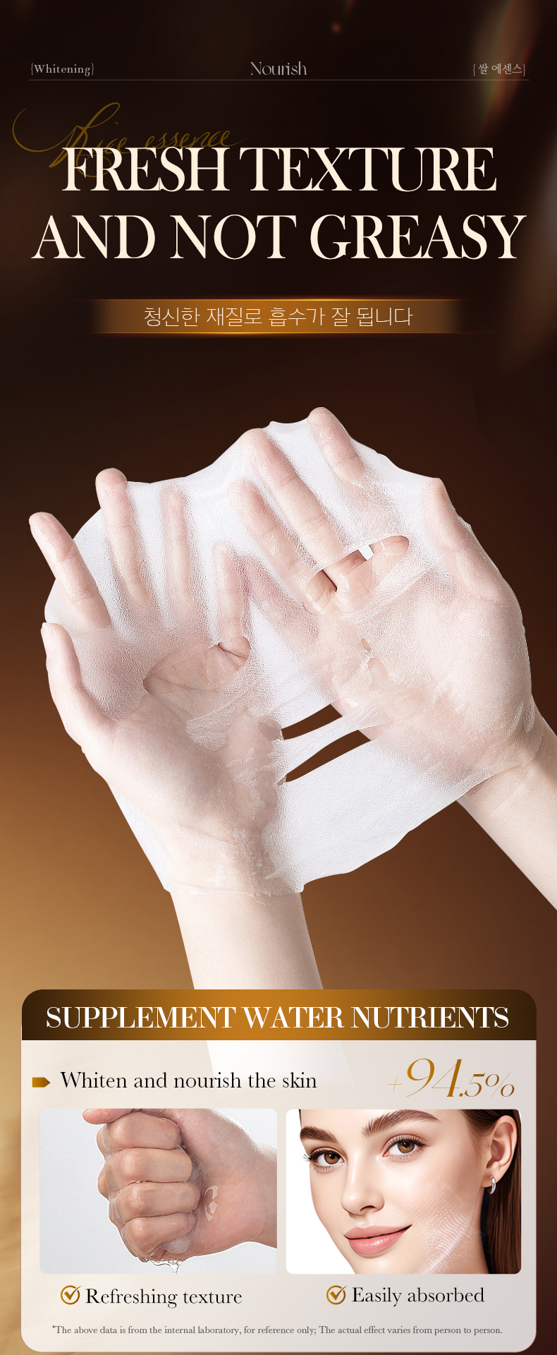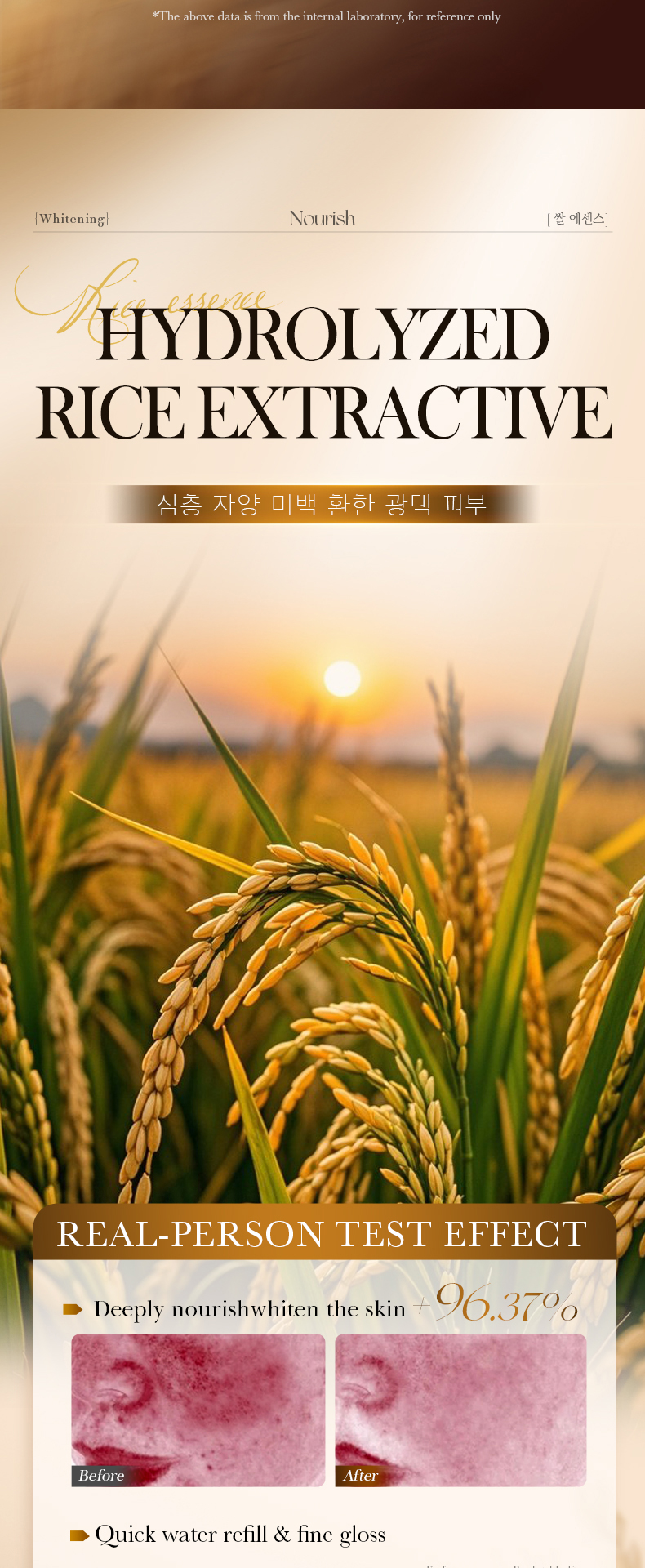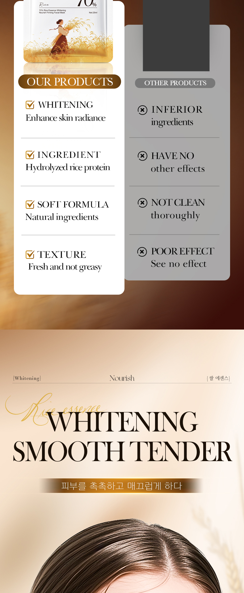 3.Containing rice essence, whiten and tender the skin, improve the dark skin, bright and fair skin tone.