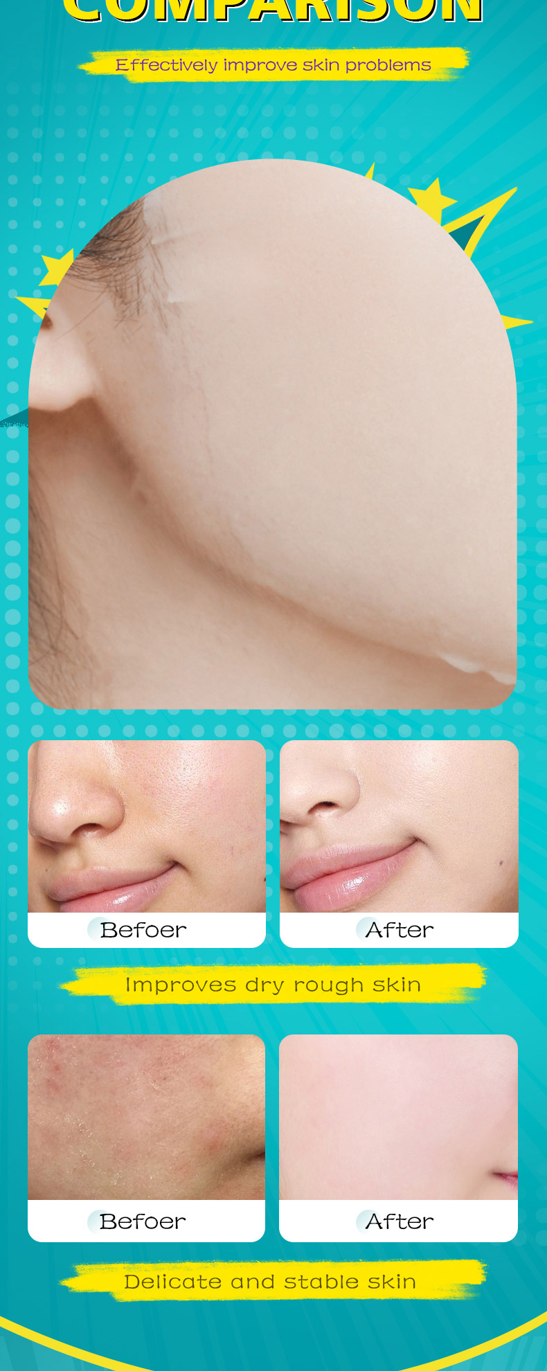 | Color | Hyaluronic acid, Avocado, Blueberry, Grape seeds, Rose, Lemon, Honey, Coconut, Strawberry |