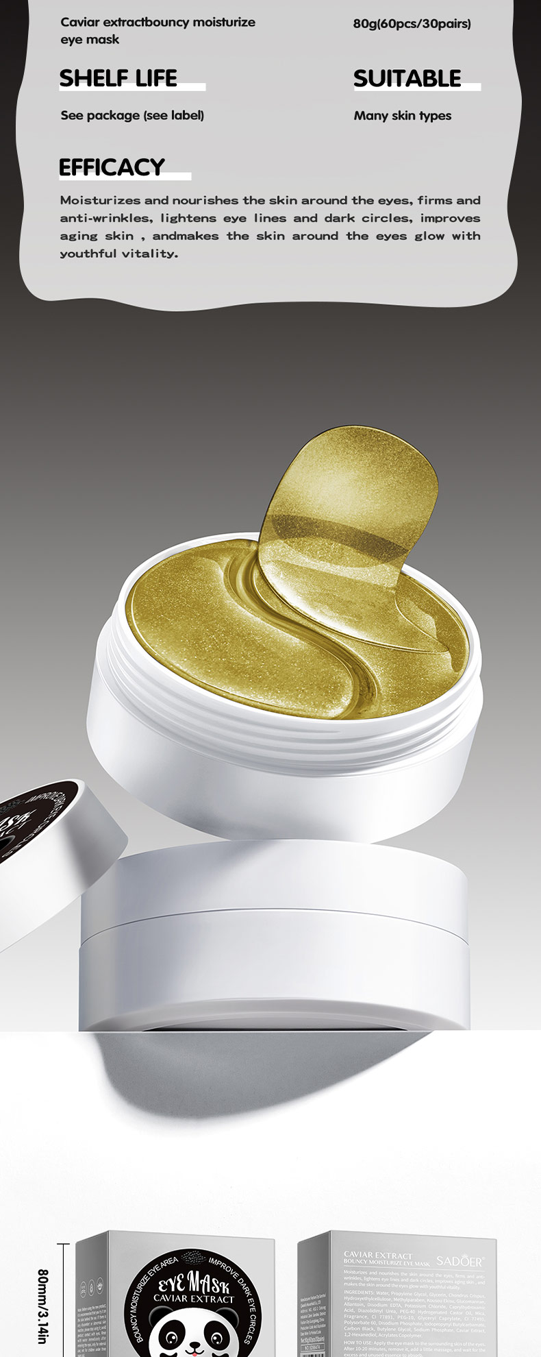 SADOER Caviar Essence Moisturizing Eye Mask 80g(60PCS/30pairs)