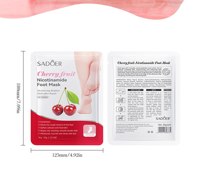 SADOER Cherry Nicotinamide Exfoliating Foot Mask 35g/ pair