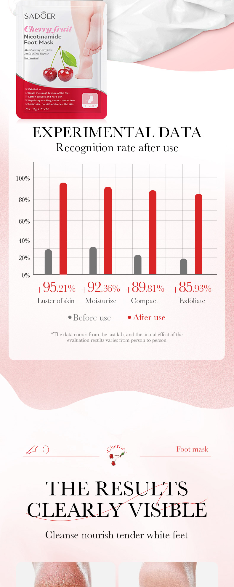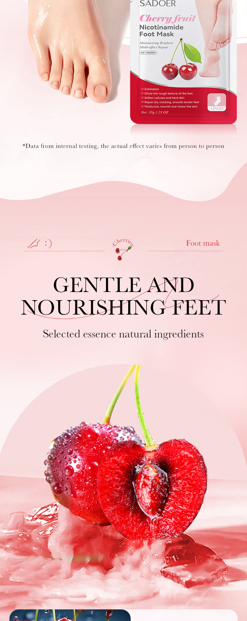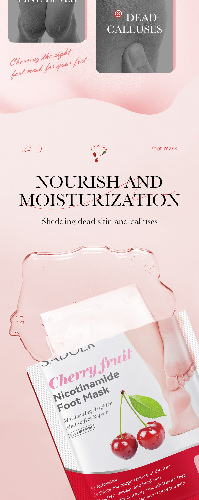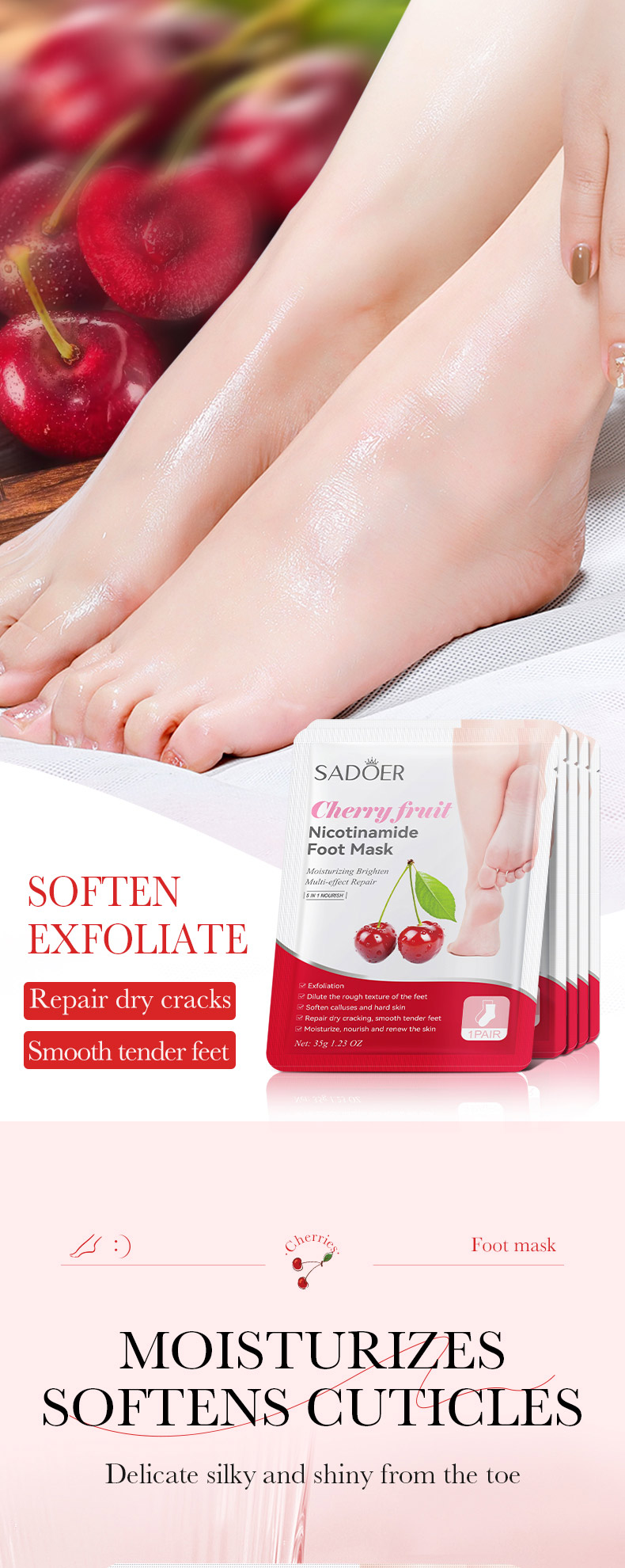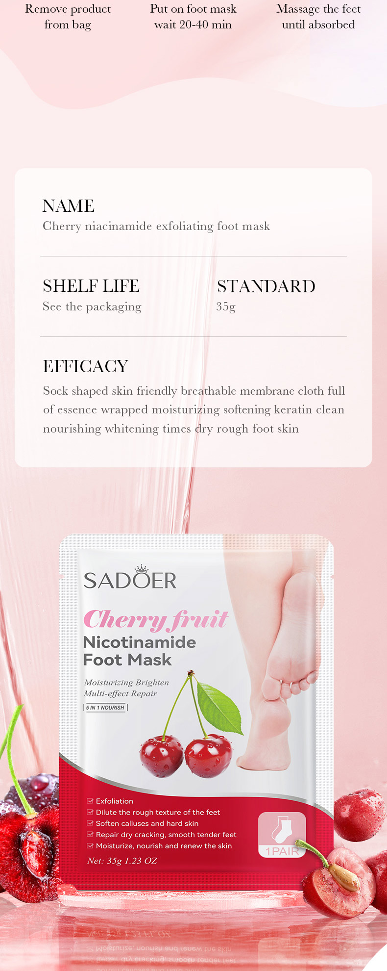 SADOER Cherry Nicotinamide Exfoliating Foot Mask 35g/ pair