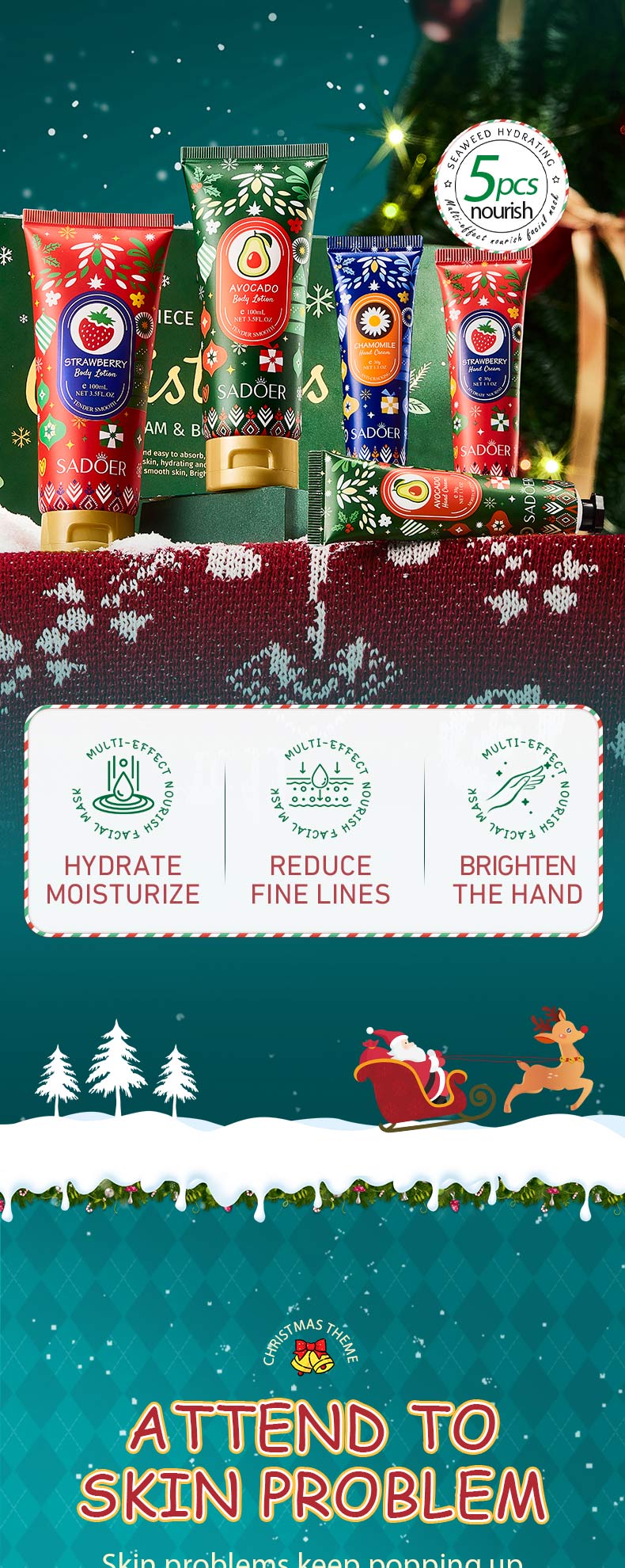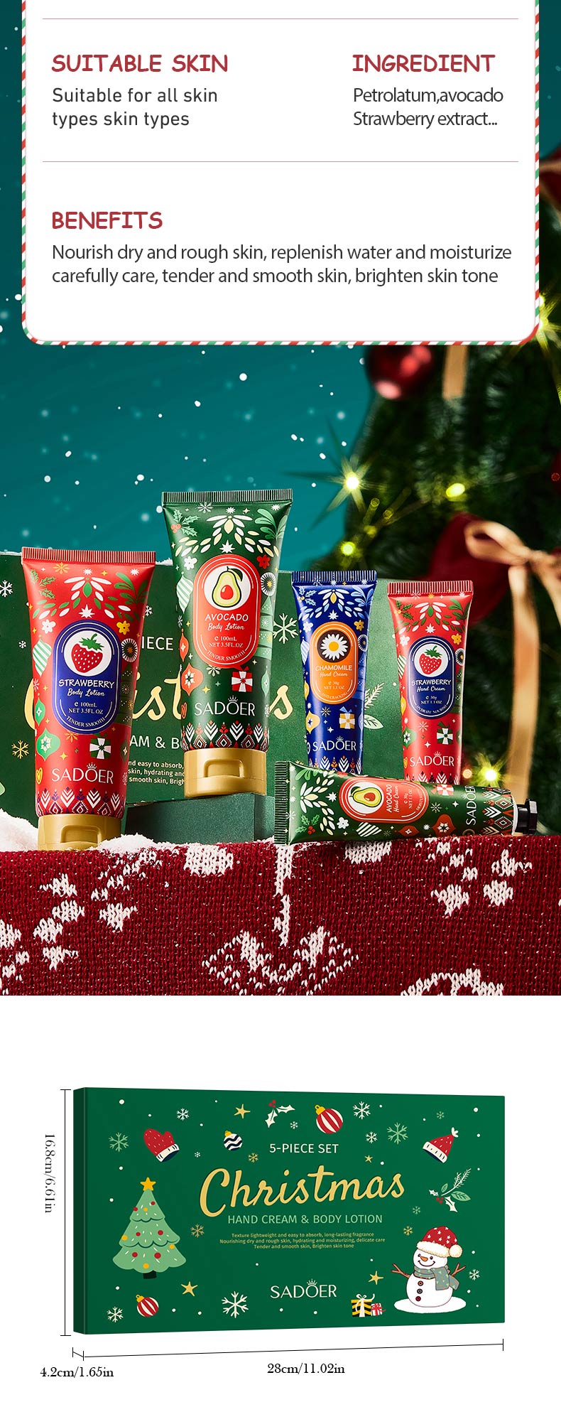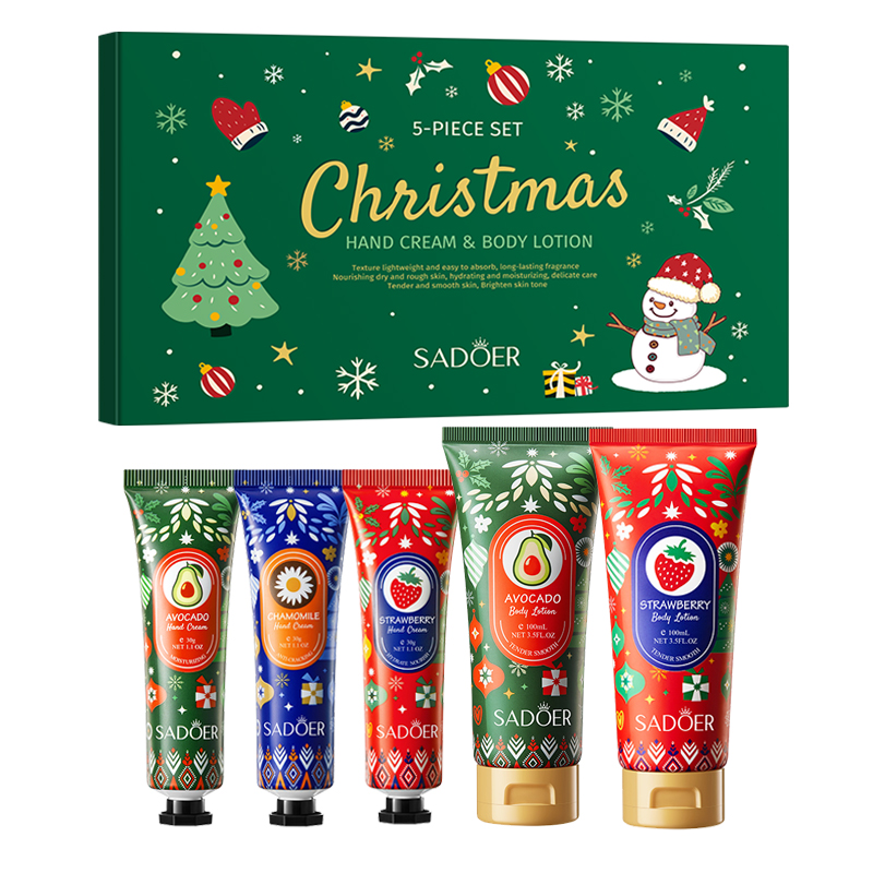 SADOER CHRISTMAS FRAGRANCE HAND CREAM+BODY LOTION 5-PIECE GIFT BOX