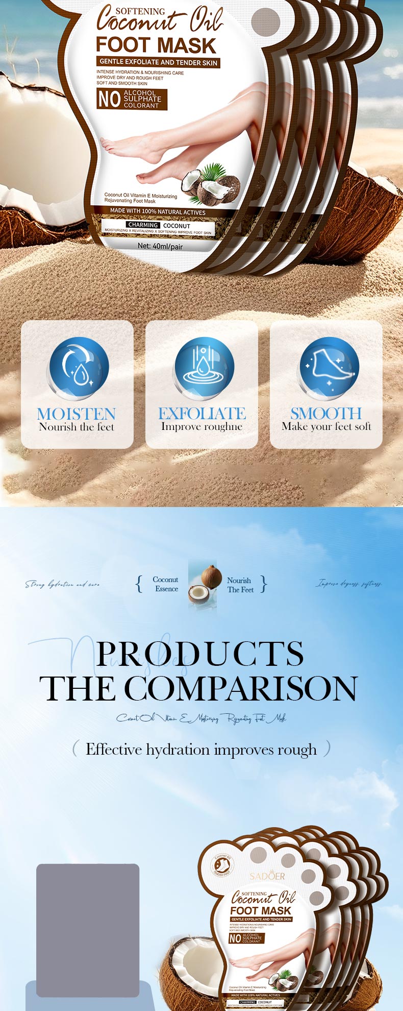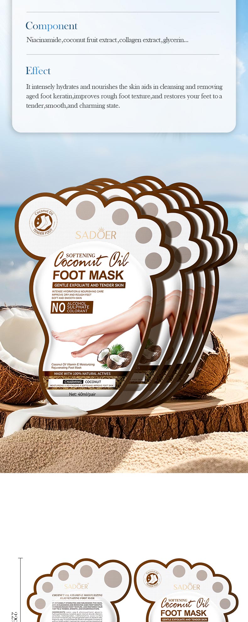 SADOER Coconut Oil Vitamin E Moisturizing Hand Mask/Foot Mask 40ml/pair