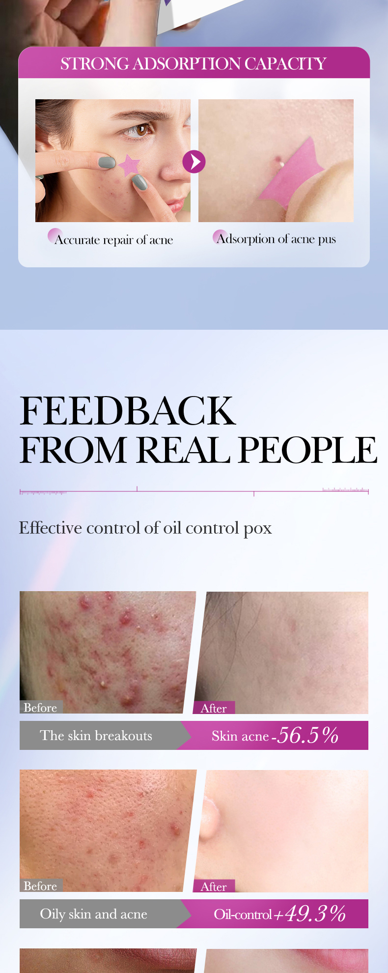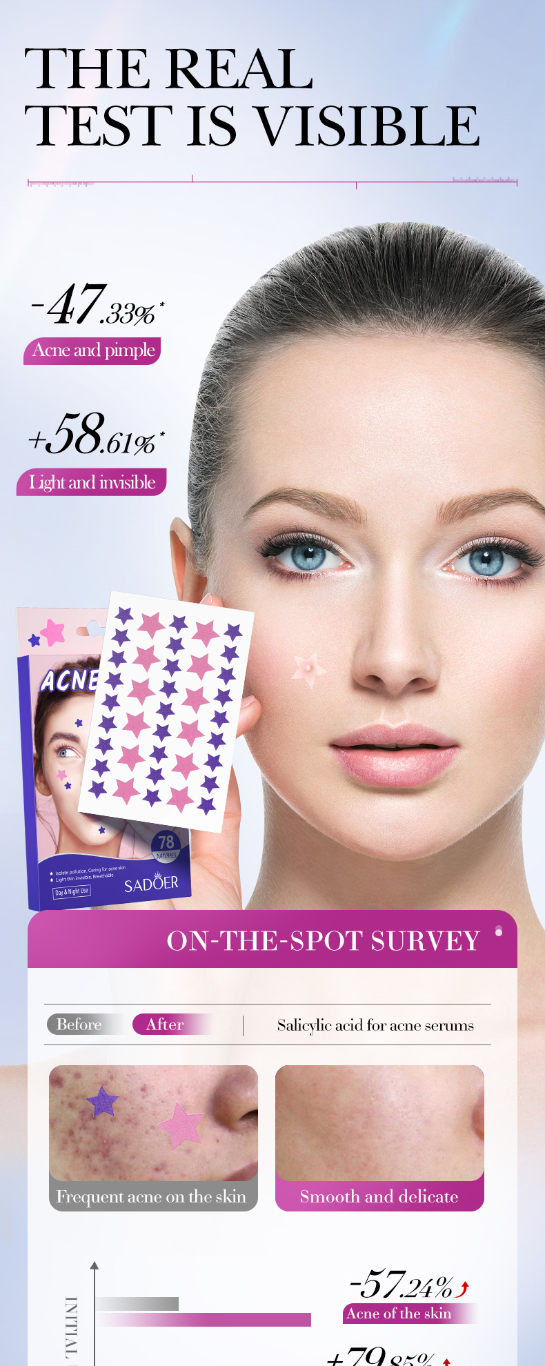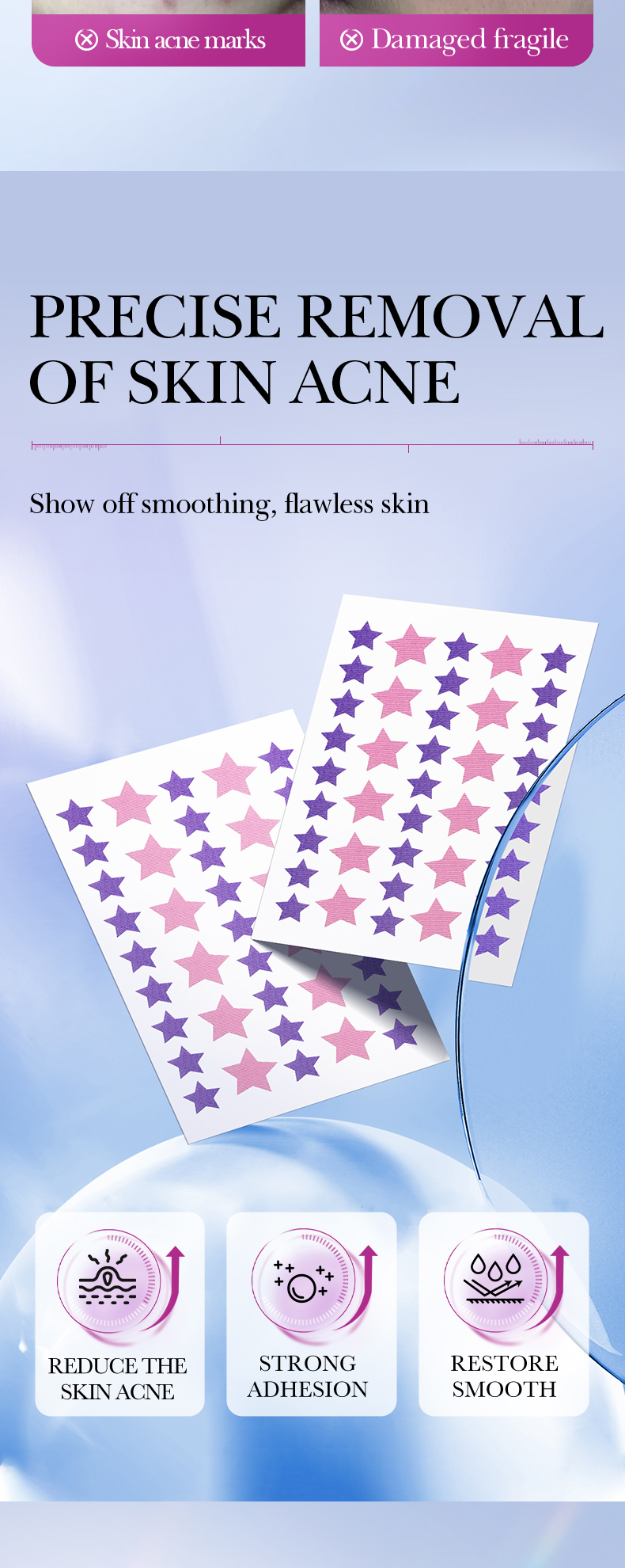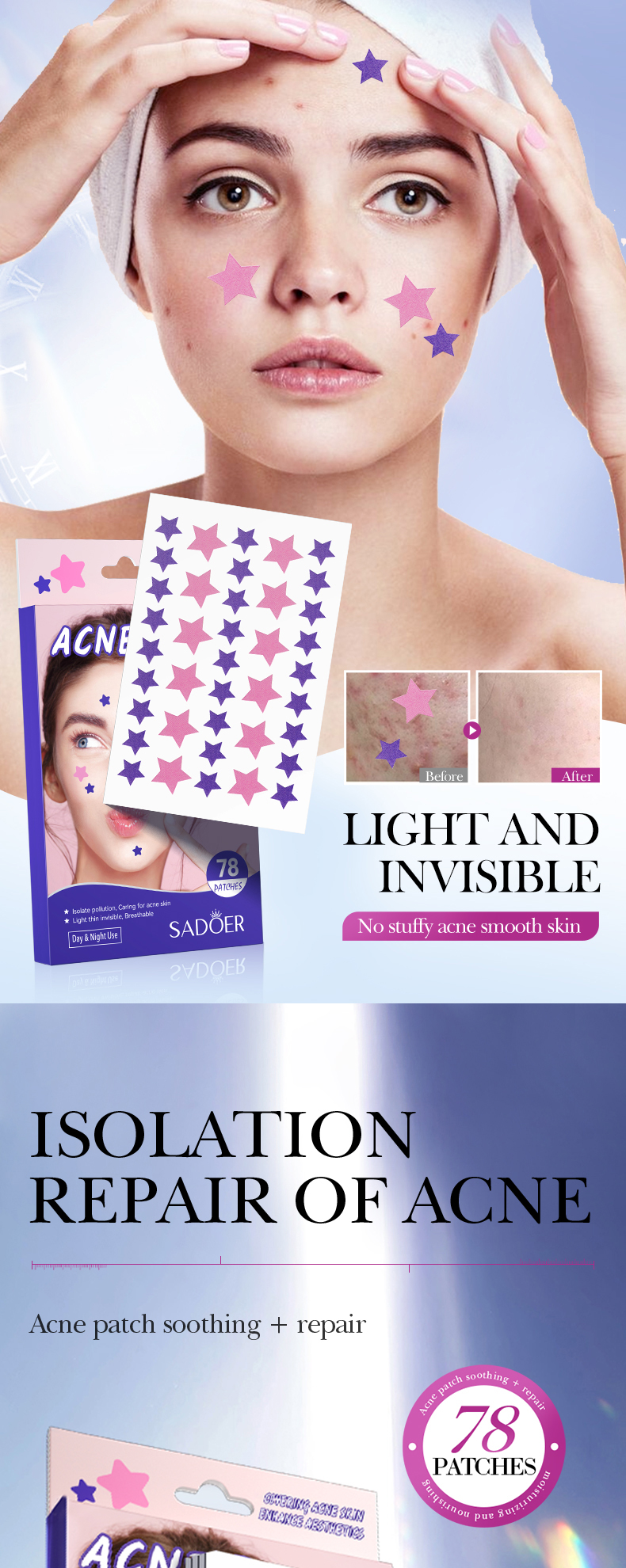 SADOER Colorful Acne Repair Patches (Pink And Purple Star-Shaped)