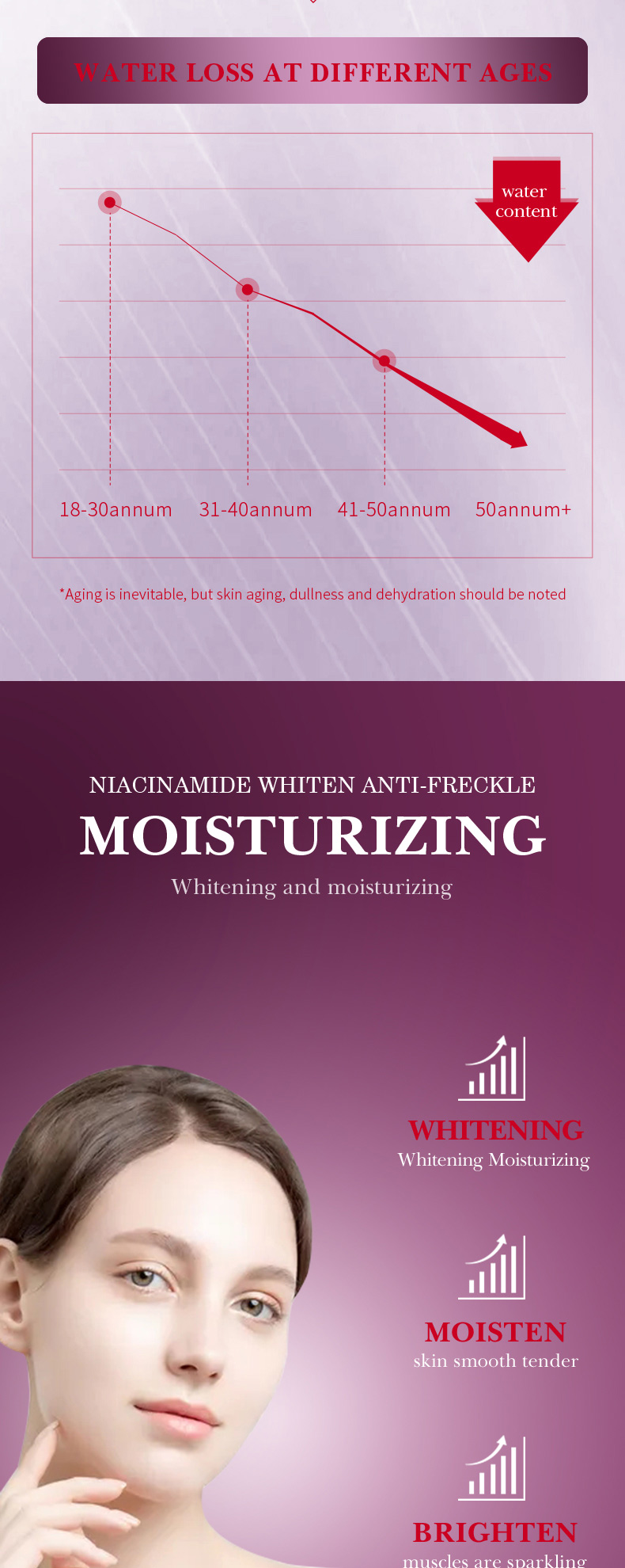 | Color | Nicotinamide, Fullerene, Astaxanthin, Lactose acid, Salicylic acid |