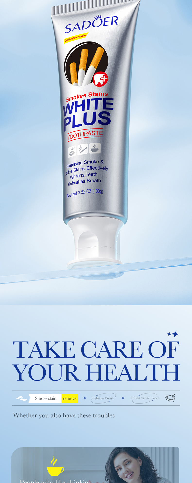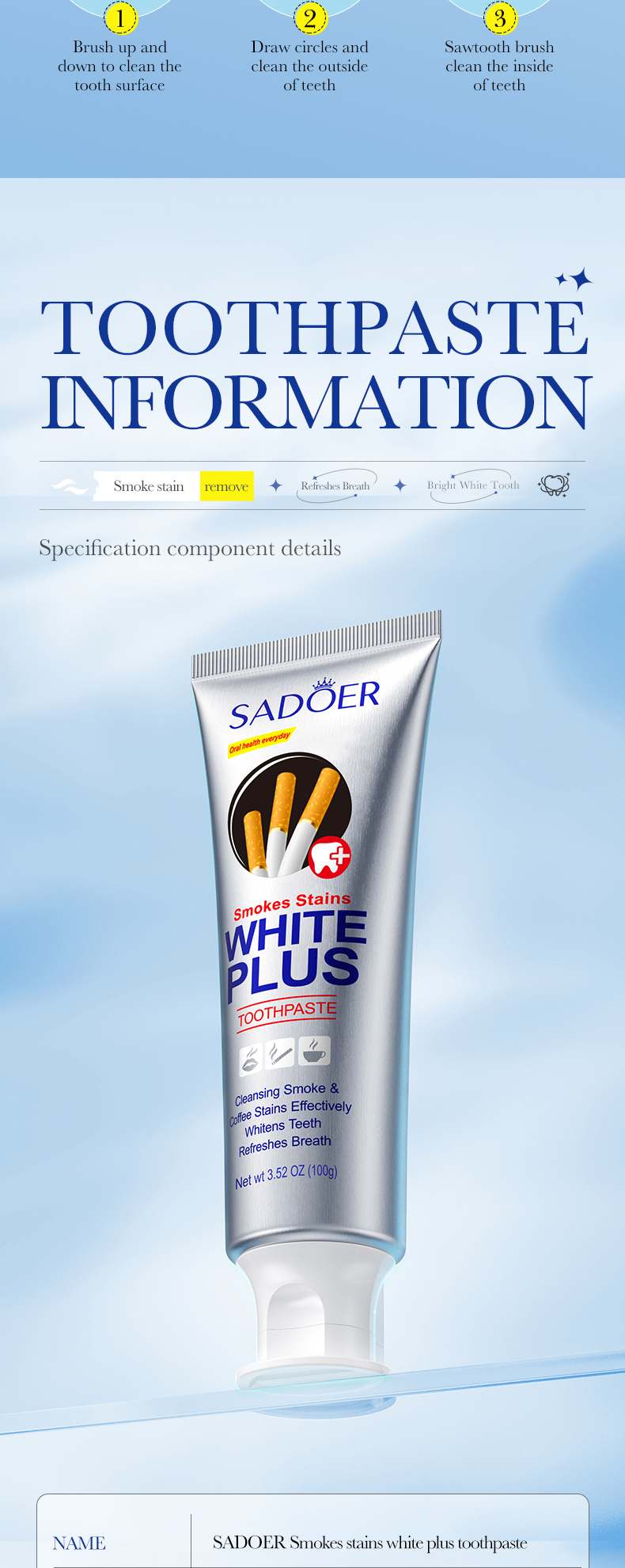 SADOER Toothpaste For Removing Cigarette Stains And Whitening
