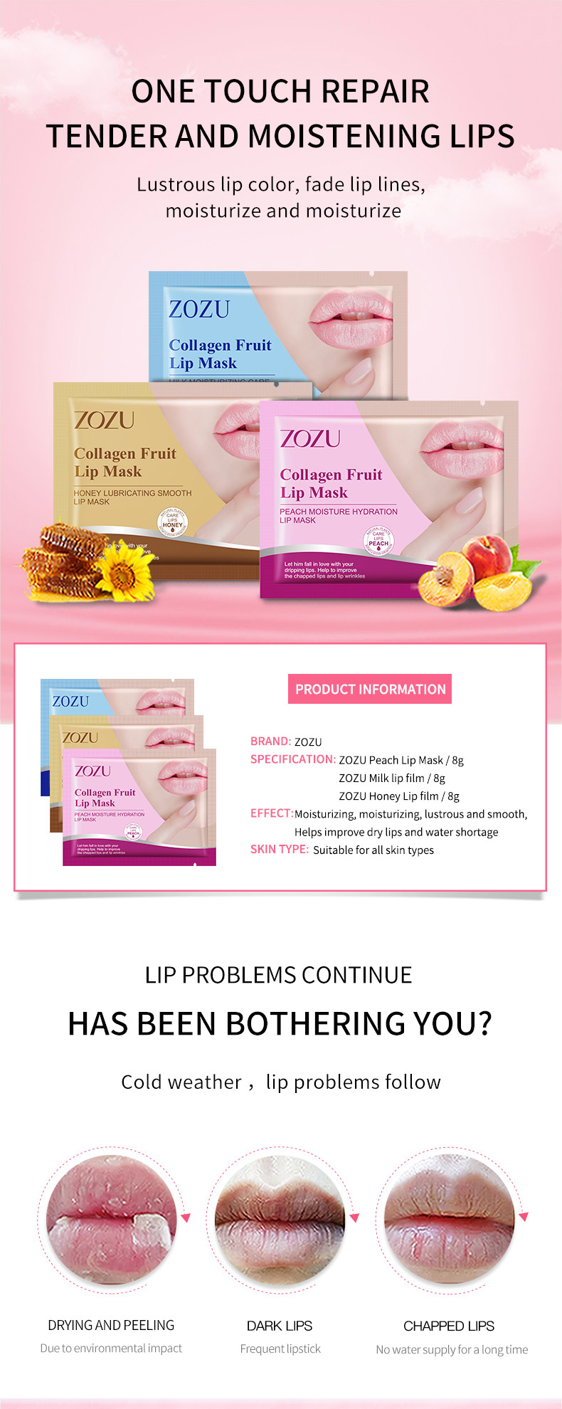ZOZU Peach Honey MilkLip Mask Sheet Packaging